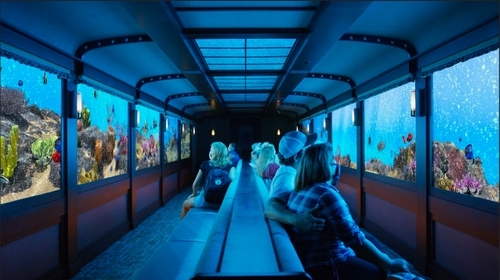 This THEA Award winner for Outstanding Achievement is an unexpected experience for all guests that enter the St Louis Aquarium. Entering the “Grand Lobby,” guests are greeted with an immersive LED curved ceiling, and integrated circular clock tank that immediately submerges guests in a fantastic display of art, imagery, color, motion, and music, while hundreds of colorful discus fish swim among the gears of the working clock. Ten original vignettes celebrate the incredible beauty found beneath the surface of our blue water planet. With incredible artistry, vignettes are choreographed to a beautiful original score, creating a visual ballet that captures the moment in the most magical way. Next, visitors board the “Union Station Express,” an immersive simulated Train Ride where guests feel the motion and view a breathtaking panoramic 38400 x 4420 re solution film as they are wondrously “transported” to the Aquarium. The ride features the voice talents of John Goodman as the conductor whose inventions allow the train to depart historic Union Station, fly above the developing city of St. Louis, then startlingly dive beneath the surface of the Mississippi River, then transport beyond to the ocean depths. The experience creates a unique transition from the Train Shed’s history to the arrival at the new Aquarium... it's difficult to know where reality ends and fantasy begins.